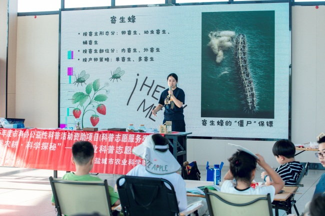 8月29日,我院走进阜宁县羊寨镇青苹果乐园科普研学基地,成功举办了全国科普月昆虫主题系列的首场活动。科技志愿者们以沉浸、互动的方式,带领孩子们开启了一场融合知识、趣味与思考的自然探索之旅。